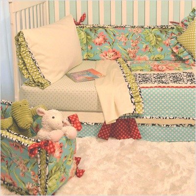 Persnickety Baby Bedding LV 1002 This 3-Piece Toddler Bedding Set includes a top crib sheet of Cotton fabric content sateen along with a coordinated"big kid" pillow case. Top the toddler bed with this colorful and cozy oversized quilt. Instructions for converting your crib bumper into a soft toy box are included. Machine wash. Made in America Features: -Bedding set. -Lucy Victoria Full Nursery collection. -Turquoise floral color. -Polyester / Cotton fabric content. -Machine wash. -Assembly not required.
